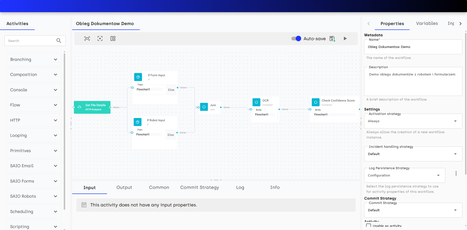 SAIO to platforma inteligentnej automatyzacji procesów, która łączy technologie Robotic Process Automation, workflow, integracje systemów i AI w jednym spójnym środowisku. Umożliwia projektowanie, uruchamianie i monitorowanie procesów end-to-end – od prostych zadań biurowych po złożone procesy. Dzięki SAIO firmy, bez względu na ich wielkość czy branżę, mogą szybciej wdrażać zmiany, redukować koszty operacyjne i odciążać ludzi od powtarzalnej pracy, zostawiając im zadania wymagające wiedzy i decyzyjności.